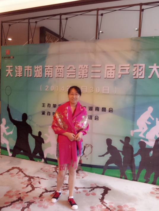 5、获得女子乒乓球单打的冠军,身披高端湘绣奖品,被全场瞩目为恒益建安人争光