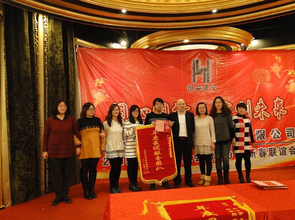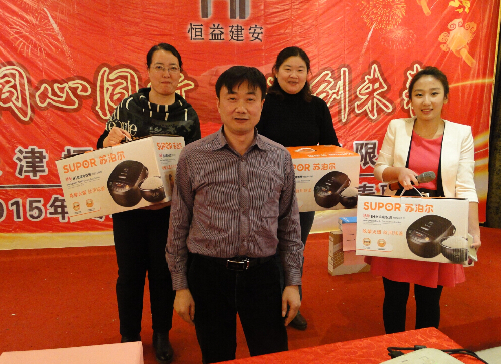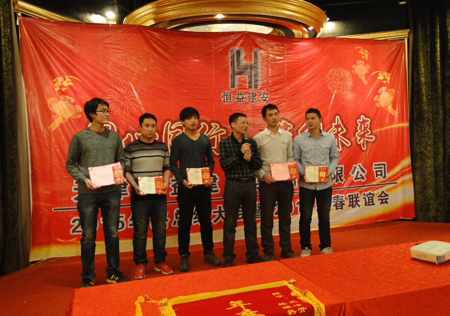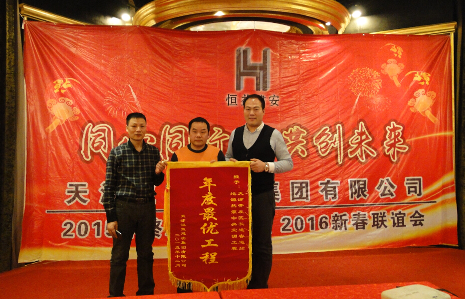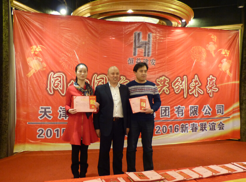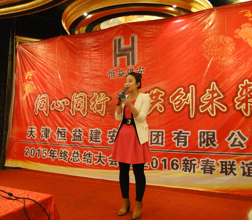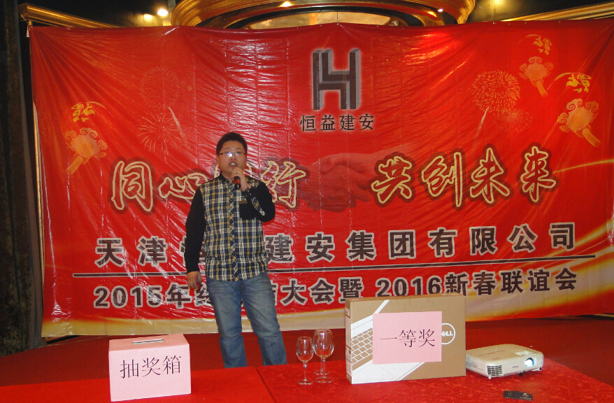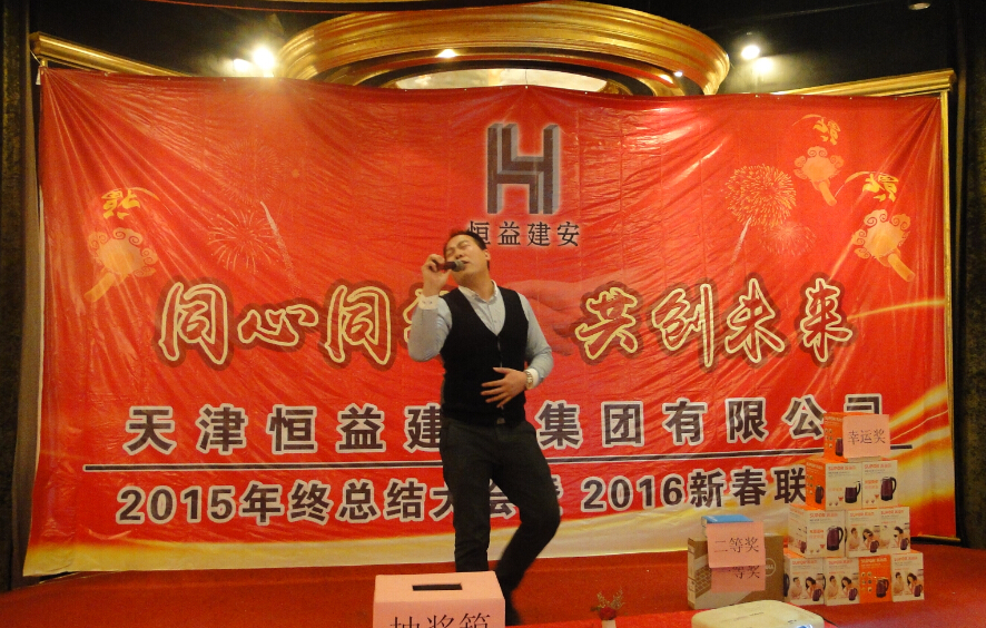 2016年1月26日,在一首激励人心的《同心同行》的歌曲里,开启了我们大家共聚一堂举行天津恒益建安集团有限公司2015年终总结大会暨2016新春联谊会!随即公司综合管理部孙颖小姐登台给大家提前拜年并解释:按照以往惯例,我公司一年一度的年终大会通常是在阳历年的12月31日如期举行,今年由于地铁6号线项目一直在夜以继日的赶工期,而且在12月31日的当天正在进行试运行阶段,所以不得不将年终大会延期举行!而目前将近春节了,公司领导考虑到有一部分同事在马上就要返回家乡过春节,为了让我们辛苦一年的公司全体员工都开心快乐的聚集在一起吃个团圆饭,所以才有了我们今天共聚在一起的温馨画面,形式简陋但意义深远,因为在过去的时间里,因为有大家的并肩奋战,恒益建安公司取得了不菲的成绩!但是我们也更加坚定的认为:只有并肩奋战、心手相牵,才能共同创造属于我们彼此的美好未来!所以,我们今年的会议主题就是“同心同行,共创未来”!