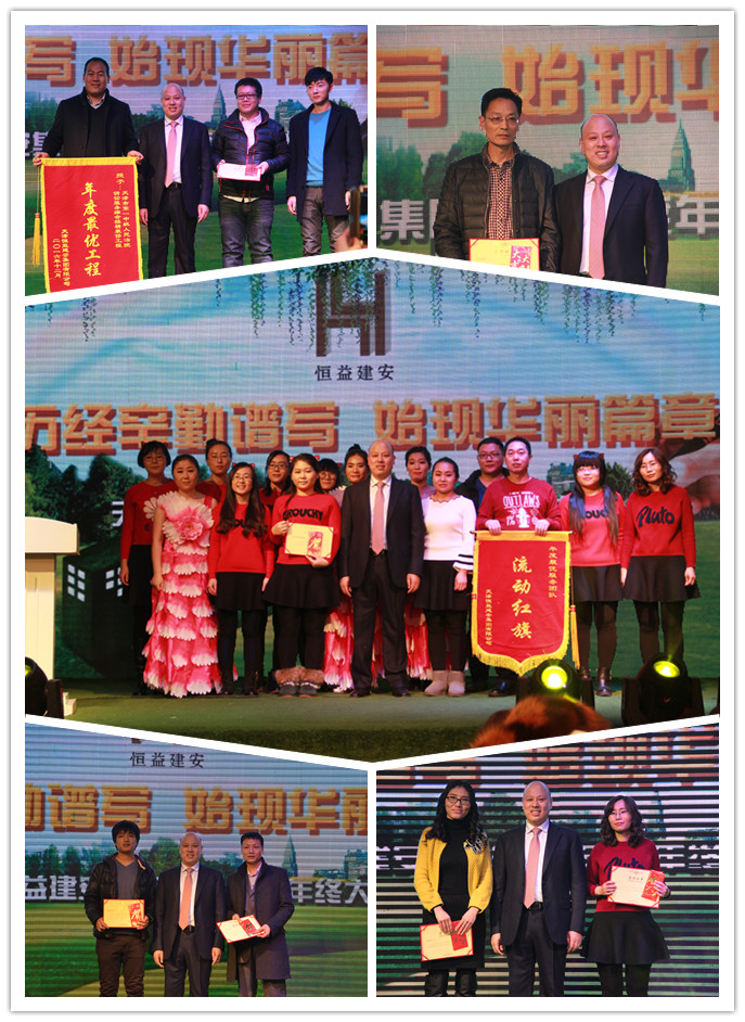 随后的颁奖环节,奖项众多:八年功勋奖、年度辛勤贡献奖、年度销售明星、年度优秀管理者、年度优秀项目管理者、年度优秀工程助理、年度最优工程项目、年度最优服务团、总经理特别奖;这些奖项从各个层面反映出公司对管理者、普通员工、团队等的工作肯定和鼓励,更是对所有恒益建安人的期盼!董事长为获奖的员工及团队一一颁发了获奖证书及奖金,并合影留念。习主席曾在2016年的新年贺词中说过:“有付出,就会有收获;只要坚持,梦想总可实现。”只要够努力,下一个获奖的恒益建安人,将会是我或你!!!