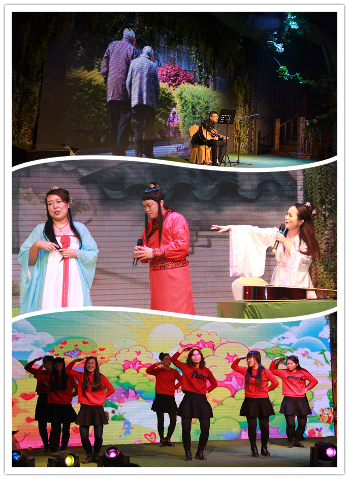 随着庄严的颁奖礼结束,一曲《好日子》将大会推上了精彩纷呈的节目庆贺阶段,层出不穷的精彩节目让大家喜笑颜开、悦目娱心。而这些节目中又有很多体现出了恒益建安人的精神面貌。《甄嬛后传》表现出了恒益建安人的专业敬业、精益求精;《当你老了》体现了我们的传统本质,注重亲情;《玩火》《热歌串烧》证明了我们的激情从未冷却;一曲《勇敢》唱出了我们敢拼、敢闯的那股永不言败的劲儿;而《纯闺蜜》、《唐朝美人》则本色出演、入木三分,令人捧腹大笑。