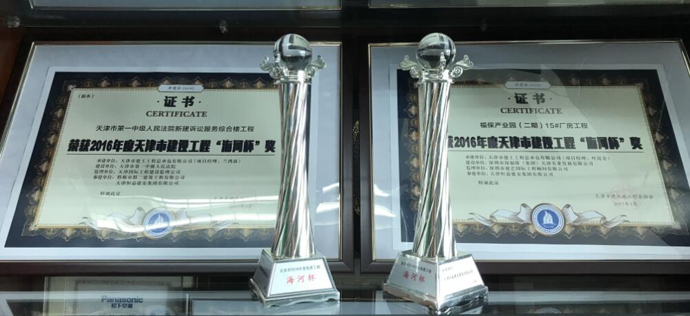 “海河杯”奖是天津市建筑行业评选的市级建设工程质量最高荣誉奖,评出的是天津市建设工程市级优质工程。我司作为精装修施工单位,能够获得这两个奖项,再次反映了我司较高的项目管理能力和施工工艺水准以及项目管理人员较高的从业素质。当然这一切更离不开这两个项目的建设、监理、总承包单位的大力支持,以及天津市建筑业协会的评审专家认可。