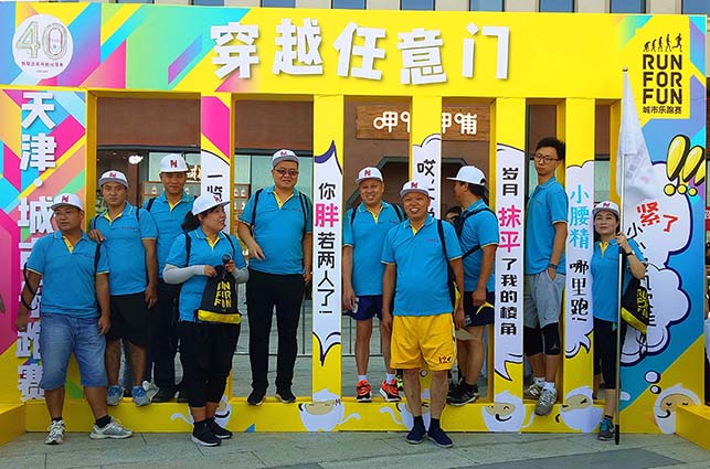2018年9月21日下午13点整,恒益建安集团10名员工在范益兵董事长亲自带领下,齐聚美丽的天津中北镇新城市中心广场。“乐跑赛”于13:00正式开始,安检入场。现场缤纷多样的嘉年华活动带来更多欢乐,比如色彩斑斓的乐豆涂鸦、围观最多的短距离投篮和我们十分青睐的身材挑战。