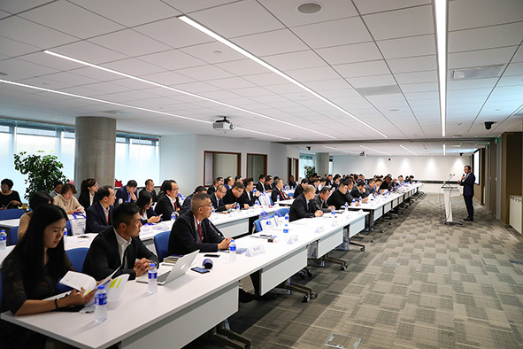 接着江森自控总部相关部门对江森自控的空调产品、系统集成业务、安防技防业务、供热业务、无锡及广州两个工厂一一进行了介绍讲解和交流,其中我公司最感兴趣的是对LEED能源咨询管理和医疗机构弱电智能化系统的垂直市场两个新的业务发展的讲解和部署。中国区财务总监对FY19的财务政策和激励机制进行了宣读。茶歇后总部工作人员带领大家参观了总部大楼并合影留念。