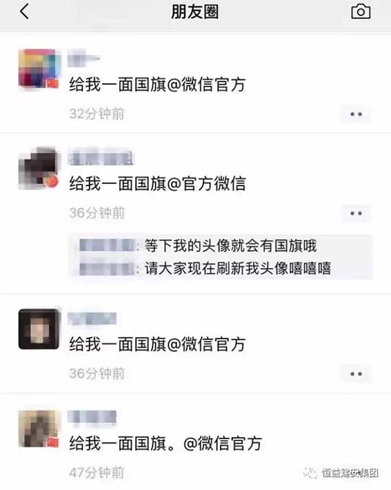 祖国母亲70周年华诞即将来临,随处能感觉到节日的气氛,大街小巷飘起了“中国红”,一排排随风飘动的五星红旗,犹如一片红色的海洋;网络上也涌起了一阵全民热潮“国旗头像”的活动,为什么每个人都想为自己的头像添上一面国旗,因为在我们心中,国旗是祖国的象征和标志,有着非比寻常的意义。
