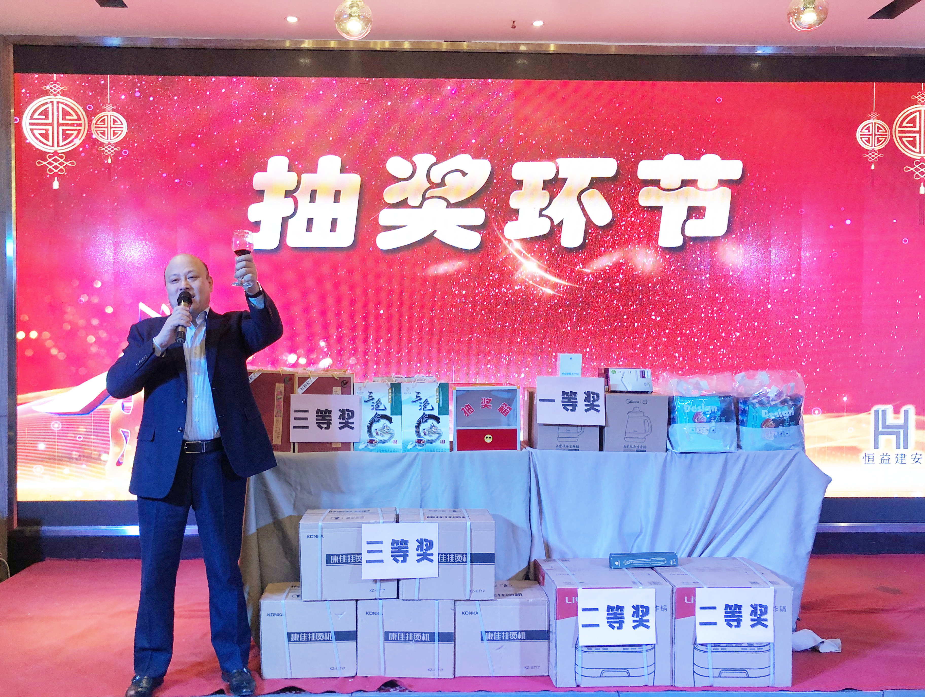 享用丰盛晚宴席间,穿插着抽奖环节。随着三等奖、二等奖、一等奖的顺序抽取,不断掀起年会的高潮。公司领导与员工们的幽默互动,激动人心的抽奖,酒杯、掌声、欢呼声使整场高潮迭起,呈现恒益这个大家庭的欢乐和谐。