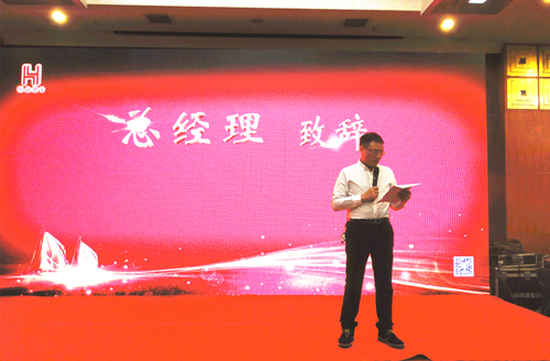 晚宴刚开始,董事长台前举杯致祝酒词,再次感谢大家一年的辛勤付出,感恩大家一年来的不畏艰难,感激大家一年的矢志奋斗!