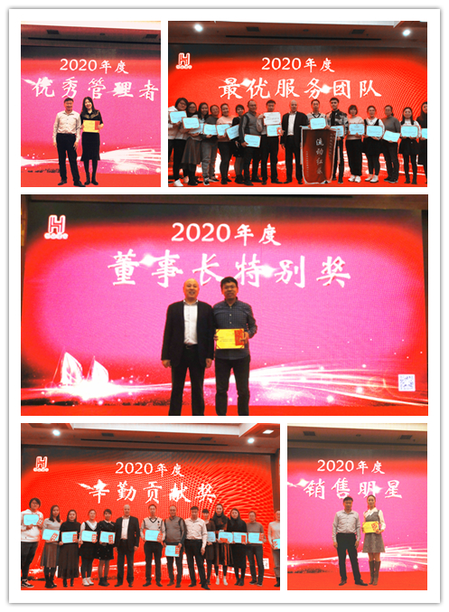 最后,董事长公布了2020年度评优结果。为各个奖项颁发荣誉证书、锦旗、红包。