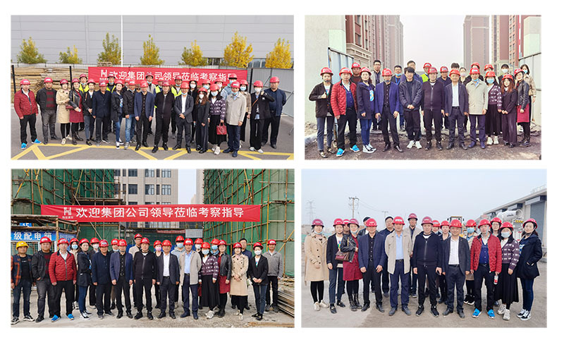 集团领导一行先后对恒大新能源汽车集团天津公司投产改建项目、中冶建工新立街城中村市政配套改造项目、天津坤港产业园四期房屋建筑总承包项目、集团新建办公楼装饰项目、香朗道市政道路项目等在建工地进行了考察。