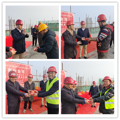 恒益建安集团董事长范益兵、总经理徐德炎及相关领导,建设方天津京南投资发展有限公司代表葛传雨、葛海清、王明全,天津安盛工程建设监理有限公司坤港项目负责人董印明、蔡宝贵齐聚一堂,共同见证这一荣耀时刻!