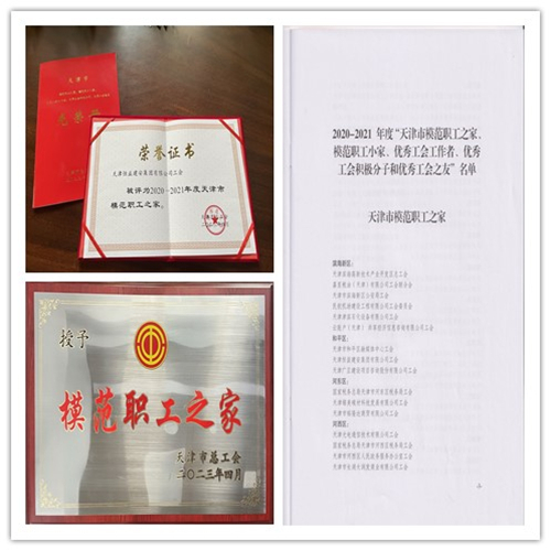 近日,我公司荣获“天津市模范职工之家”称号,是各上级工会对公司工作的帮助与肯定,更是对我们的鞭策和鼓舞,在今后的工作中,我们将继续秉承服务职工、为职工谋福利的宗旨,继续为大家打造和谐满意的工作环境与氛围,为企业技术提升和高质量发展汇聚智慧和力量。