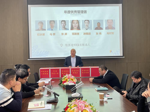 年度优秀管理者评选中,范益兵董事长对每位入选的部门经理进行了点评,肯定了各位管理者工作成果,鼓励大家要积累自身优势,奋发有为,成为专业领军人,不断学习,提升自己,希望在新的一年中奋发图强,执著拼搏,迎难而上。
