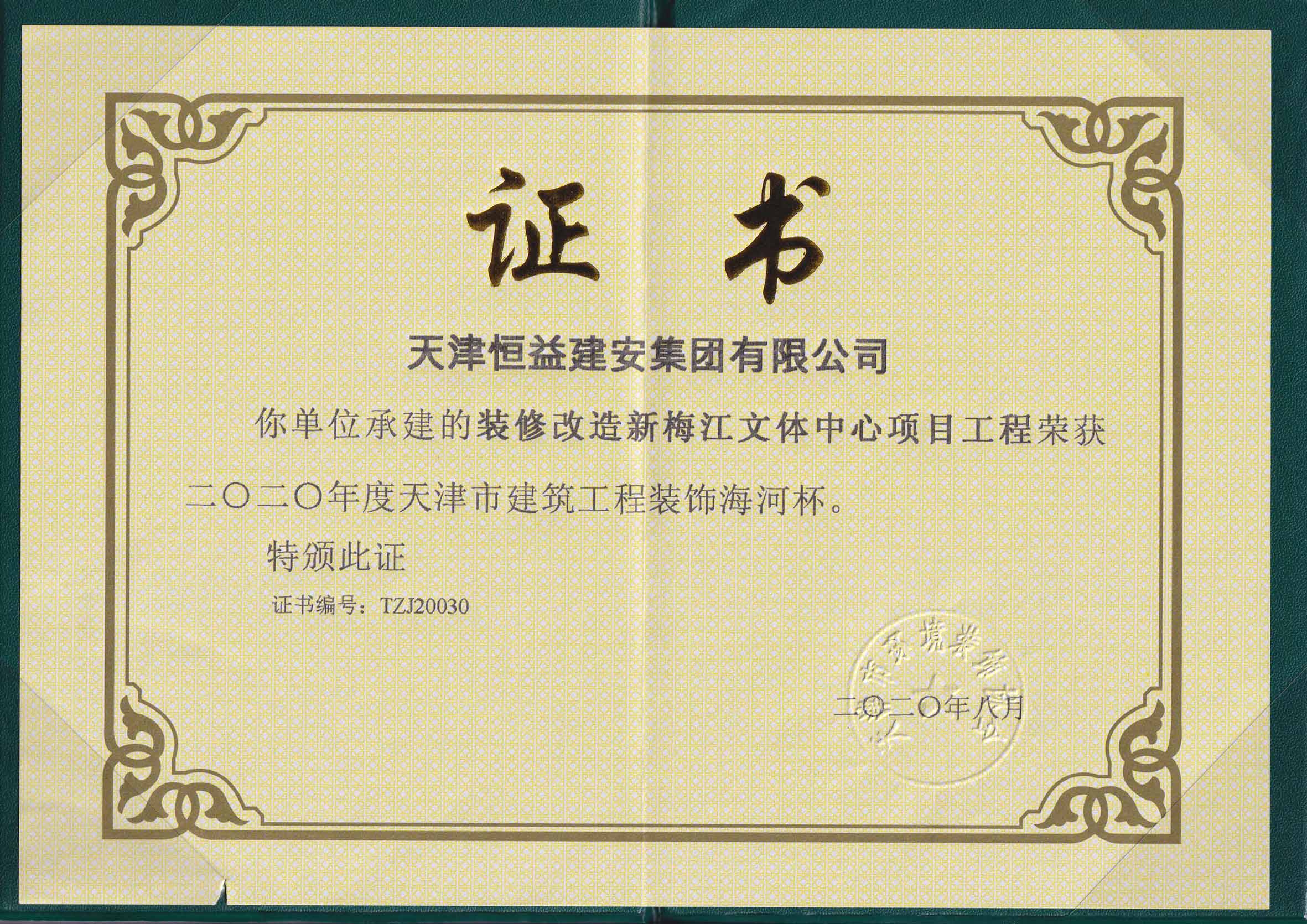 2020年度天津市建筑工程装饰海河杯(新梅江文体中
